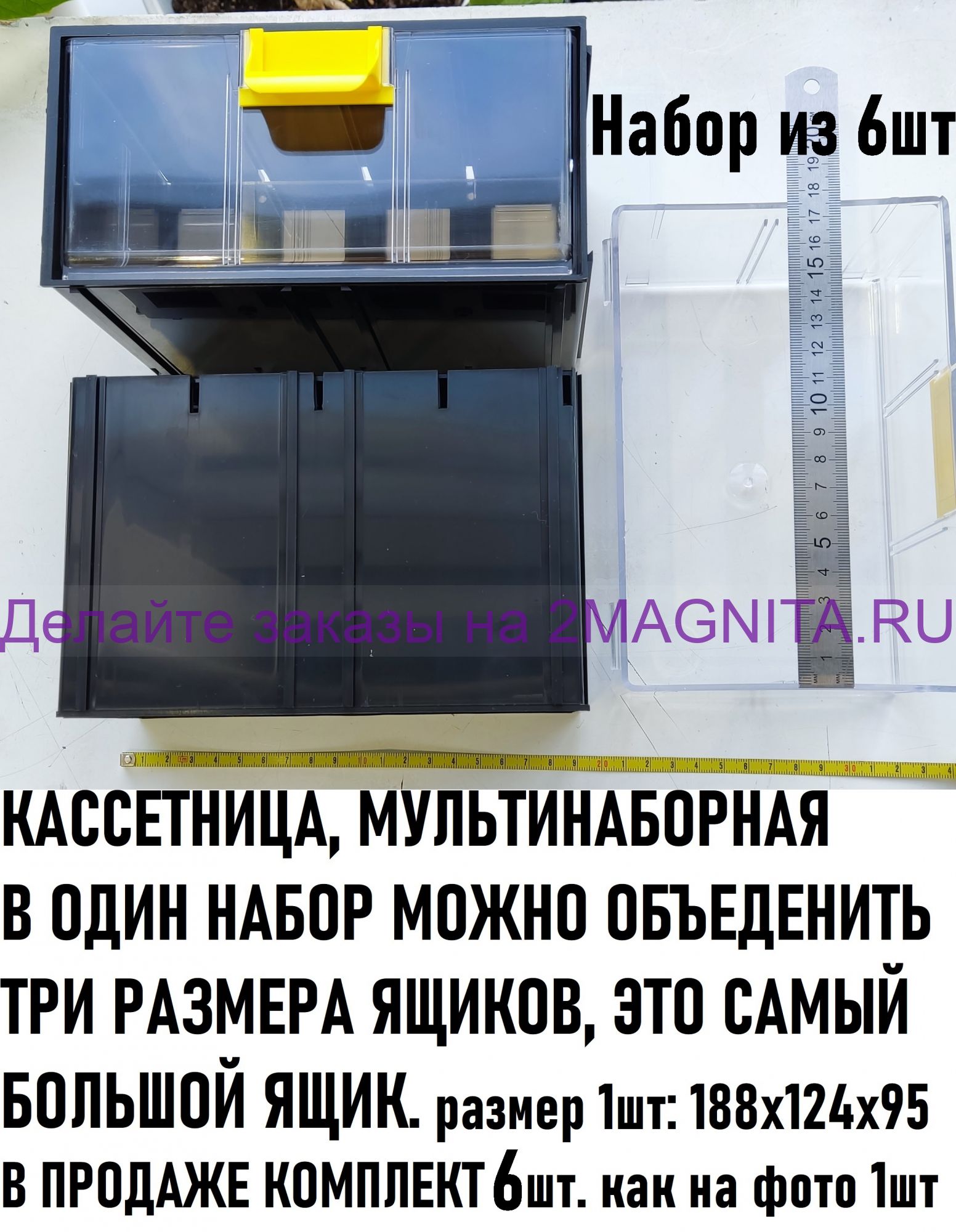 Кассетница КБ-6 прозрачная мультинаборная, на 6 ящичков