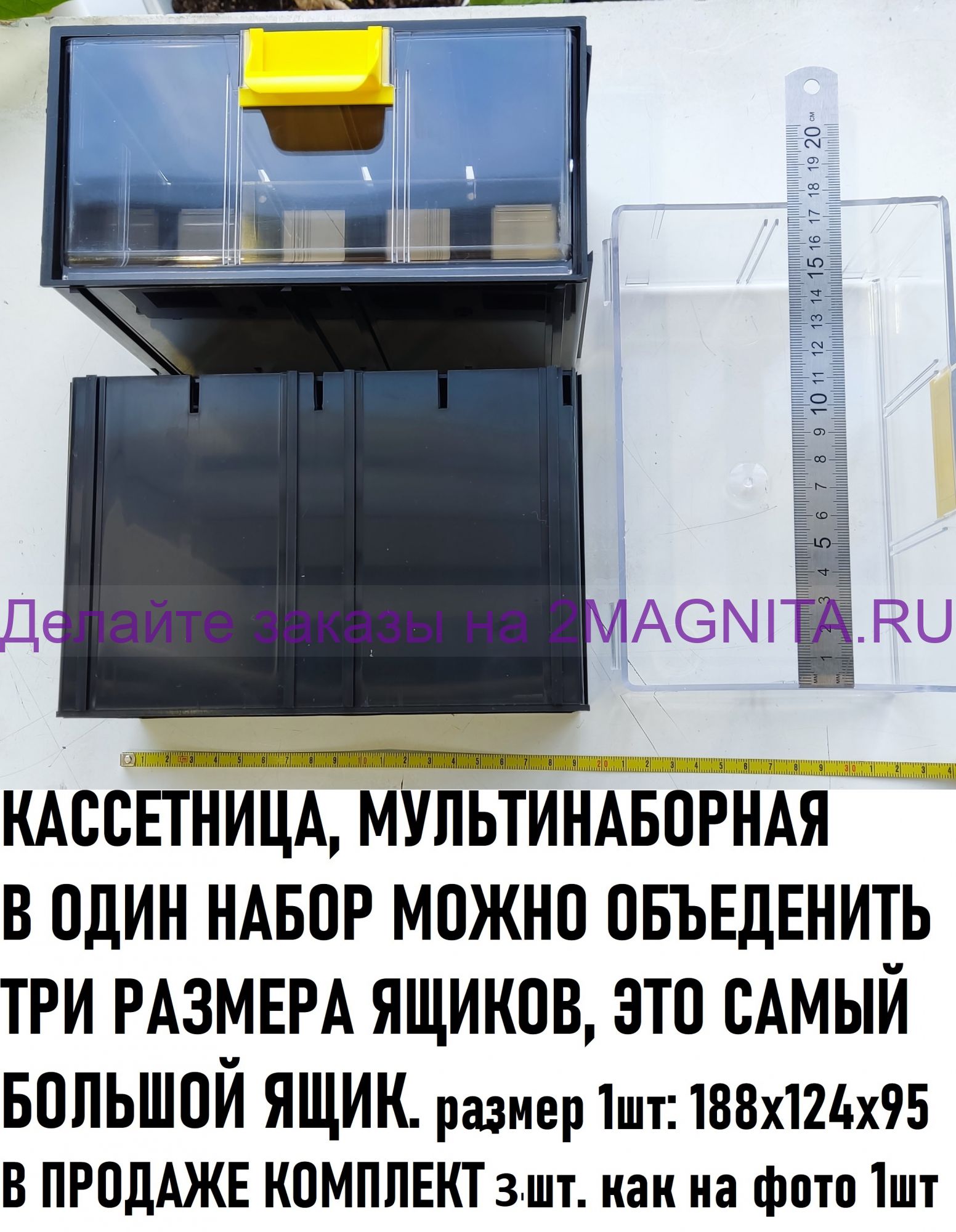 Описание Кассетница КБ-3 прозрачная мультинаборная, на 3 ящичка