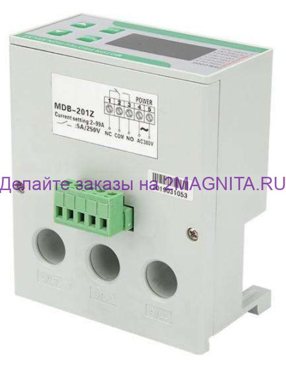 Устройство защиты электродвигателя MDB 201Z (ТЗД-3Ф) переменного тока 380 вольт, от перегрузки фазы по току. Цифровая защита контролирует ток потребления от 2-99A 380V AC, защищая электрический мотор от перегрузки в случае обрыва фазы, и выхода за допустимые пределы.